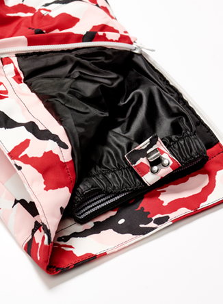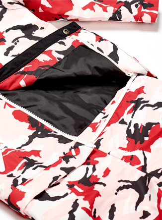 One for the adventurers, this red and pink camouflage snow suit certainly won’t blend in with the crowd. It’s made from our robust SnowSense outer shell fabric and boasts a range of technical features: