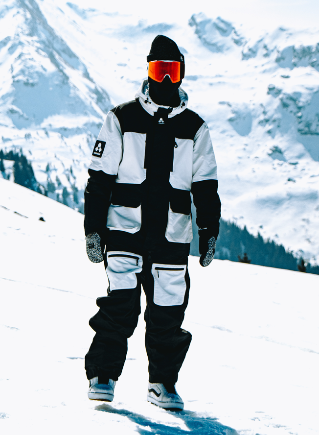 New in this season, this monochrome snow suit boasts an understated style thanks to its utility pockets and clean design. It’s part of our 2-in-1 Acclimate™ range which features a 360° zip around the waist that transforms the Oneskee suit into a jacket in seconds, allowing you to use it independently during apres and the milder months. It’s made from our robust SnowSense outer shell fabric and the following technical features: